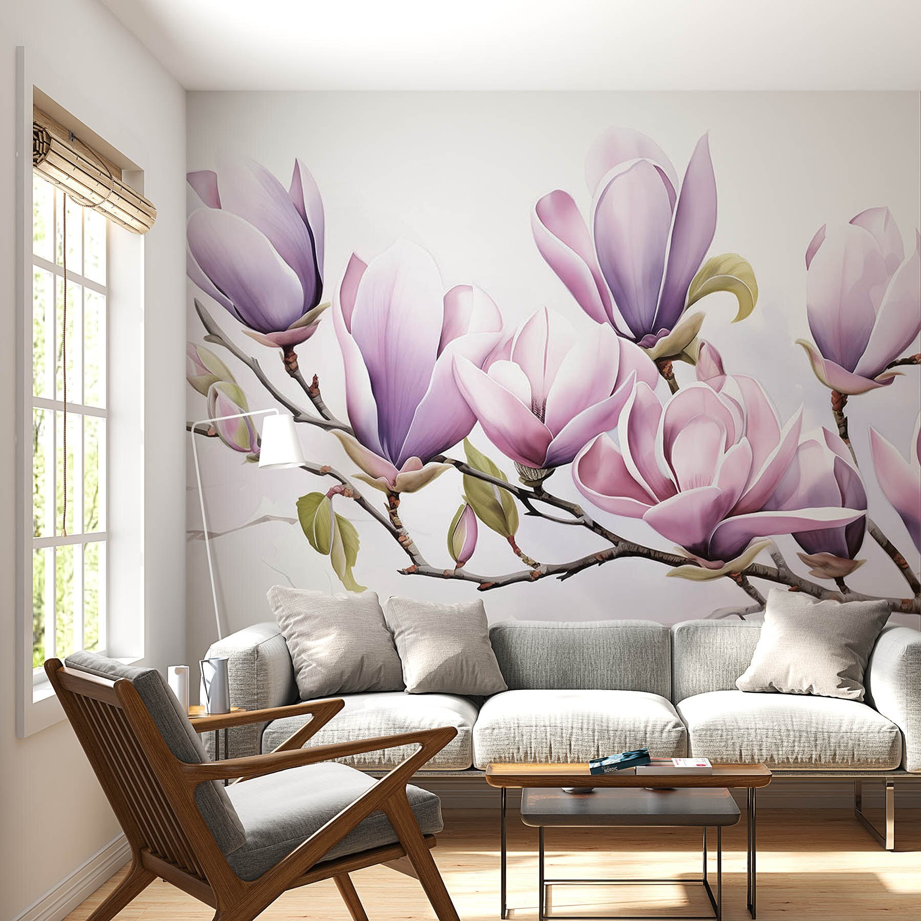 Bring a splash of nature indoors with the “Wall Murals Branch with Purple Flowers.” This stunning mural captures the delicate beauty of purple blossoms, making any room feel more vibrant and alive. Picture it in a cozy corner, where sunlight dances off the petals, instantly brightening the space. The soft watercolors evoke a sense of calm—perfect for those moments when you need to unwind. Friends will wonder how they missed these enchanting blooms in your home. It’s like having spring on your wall all year round! Who wouldn’t want a little beauty like this?