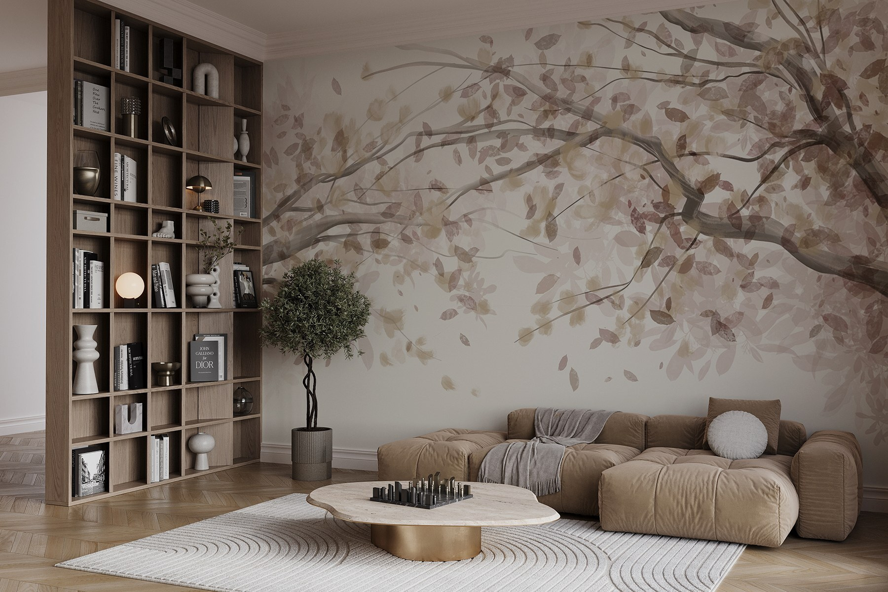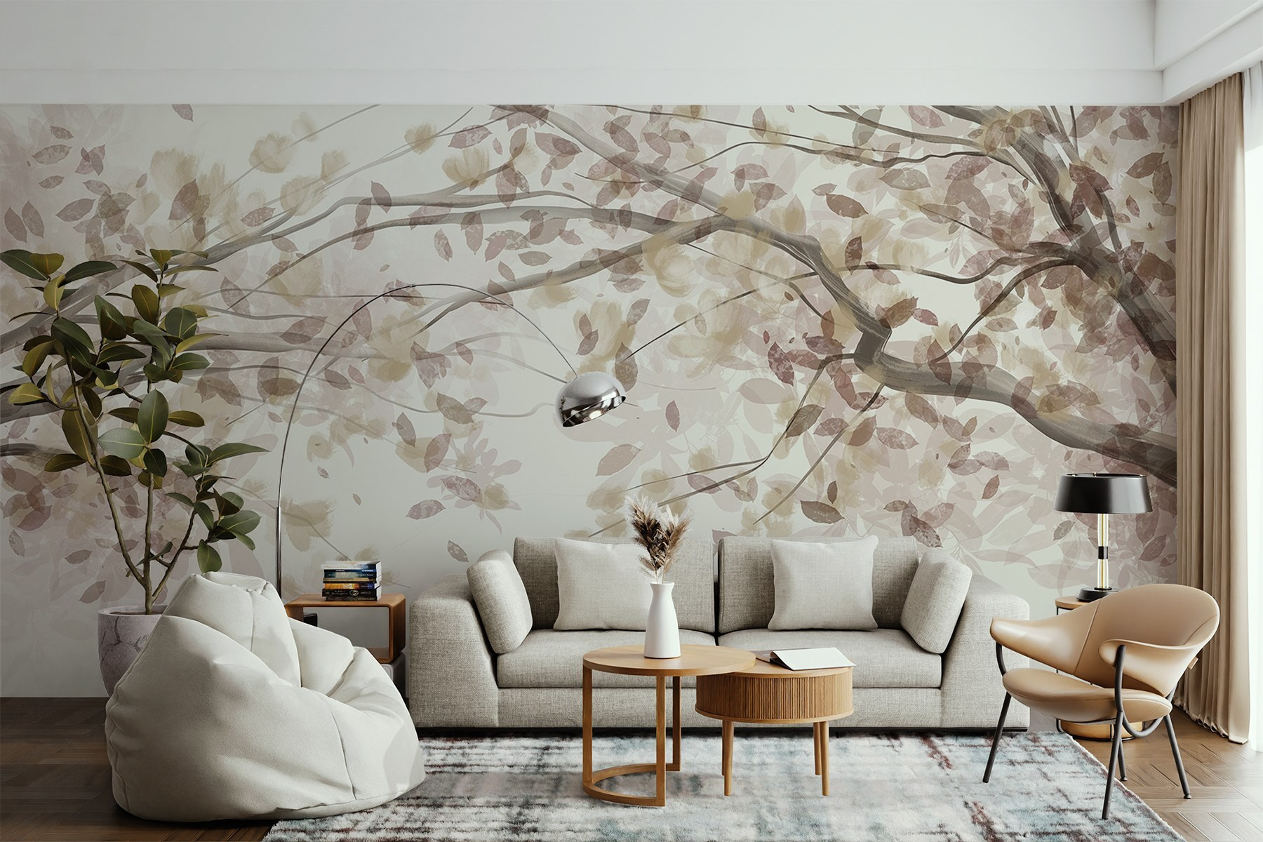 Μεταμορφώστε οποιοδήποτε δωμάτιο με αυτή την υπέροχη τοιχογραφία που αποτυπώνει τη γοητεία των κλαδιών δέντρων που κοσμούνται με φύλλα. Φανταστείτε να μπαίνετε σε έναν γαλήνιο ιαπωνικό κήπο χωρίς να βγείτε από το σπίτι σας. Οι απαλές αποχρώσεις δημιουργούν ένα ηρεμιστικό σκηνικό, ψιθυρίζοντας ηρεμία, ενώ προσθέτουν μια βουτιά από τη χάρη της φύσης. Είναι ιδανικό για μια ζεστή γωνιά ανάγνωσης ή μια χαλαρωτική ατμόσφαιρα στο υπνοδωμάτιο. Φανταστείτε αυτές τις στιγμές ήσυχου προβληματισμού, ίσως με ένα ζεστό φλιτζάνι τσάι κοντά σας. Ποιος χρειάζεται ένα καταφύγιο στη φύση όταν αυτή η τοιχογραφία φέρνει όλη αυτή την ειρήνη μέσα σας; Οι λάτρεις της φύσης και οι λάτρεις της διακόσμησης θα ξετρελαθούν με τη λεπτή κομψότητά της!