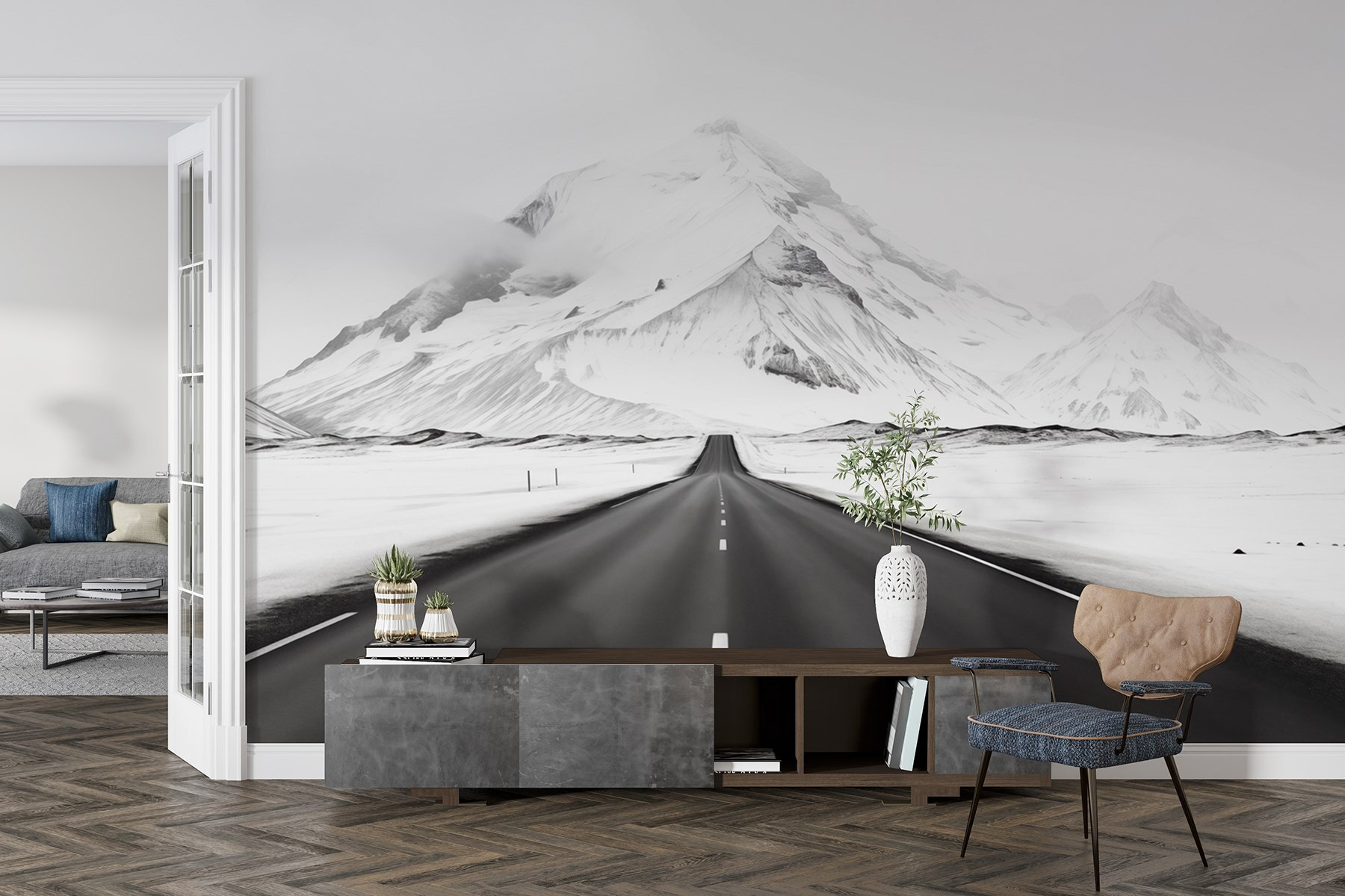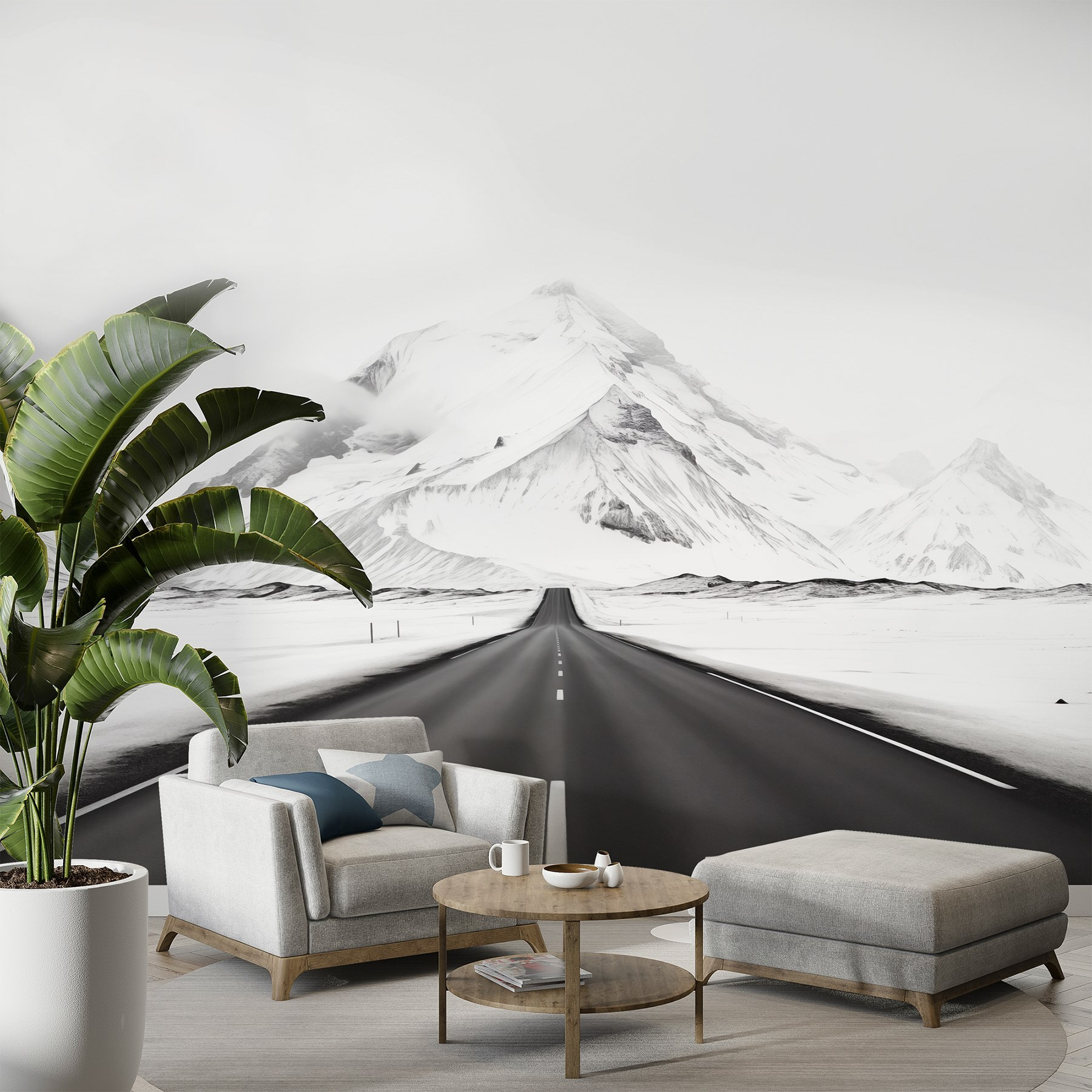 Μεταμορφώστε οποιοδήποτε δωμάτιο σε ένα χειμωνιάτικο τοπίο θαυμάτων με αυτή την εκπληκτική τοιχογραφία τοίχου. Φανταστείτε έναν απέραντο, ανοιχτό δρόμο που απλώνεται προς τα μεγαλοπρεπή χιονισμένα βουνά και σας καλεί να εξερευνήσετε την ύπαιθρο. Οι δροσεροί τόνοι σας προσελκύουν, κάνοντας κάθε χώρο να αισθάνεται φρέσκος και φιλόξενος. Φανταστείτε να αράζετε με ένα ζεστό ποτό, ατενίζοντας αυτή τη γαλήνια θέα και νιώθοντας αυτή την ειρηνική ψύχρα στον αέρα, ακόμα και όταν είστε άνετα μέσα. Είναι σαν να έχετε ένα κομμάτι περιπέτειας στον τοίχο σας, εμπνέοντας ονειροπολήσεις για αυθόρμητα ταξίδια και παγωμένες πεζοπορίες. Ιδανικό για τους λάτρεις της φύσης ή για όποιον θέλει να προσθέσει μια πινελιά ηρεμίας στη διακόσμησή του!