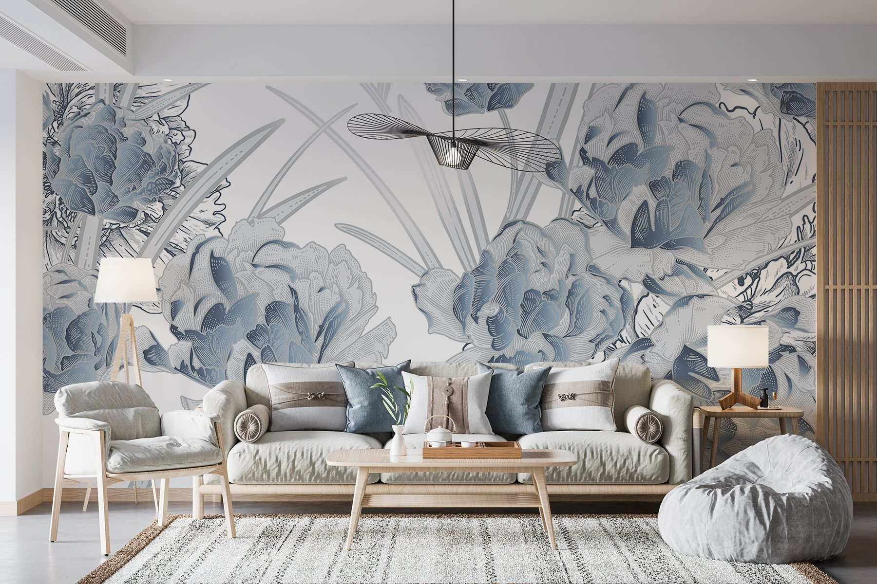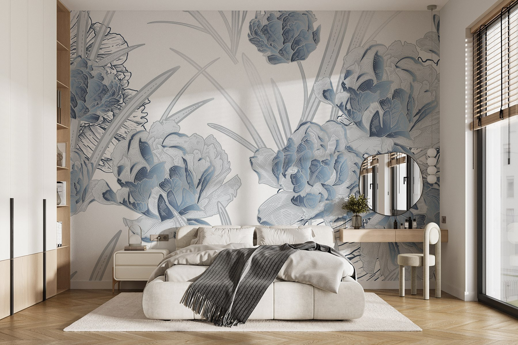 Μεταμορφώστε κάθε χώρο με το μαγευτικό “Delicate Blooms in Soft Hues”. Είναι σαν να έχετε τον δικό σας μικρό κήπο σε εσωτερικό χώρο, αλλά χωρίς να χρειάζεστε πράσινο αντίχειρα. Φανταστείτε το εξής: ξυπνώντας μπροστά σε έναν τοίχο ζωντανό με απαλά άνθη σε αποχρώσεις του μπλε, φιλόξενα και γαλήνια, που κάνουν κάθε στιγμή να μοιάζει λίγο πιο ξεχωριστή. Είτε πρόκειται για την άνετη γωνιά ανάγνωσης είτε για μια ζωντανή κουζίνα, αυτή η τοιχογραφία προσθέτει μια πινελιά ομορφιάς που μοιάζει αβίαστα κομψή. Οι φίλοι μπορεί ακόμη και να ρωτήσουν αν προσλάβατε διακοσμητή, και ποιος χρειάζεται να παραδεχτεί ότι πρόκειται απλώς για έναν υπέροχο τοίχο; Οι λεπτές γραμμές και οι απαλές αποχρώσεις δημιουργούν μια ονειρική ατμόσφαιρα, που σας περιβάλλει σαν μια ζεστή αγκαλιά σε μια ψυχρή μέρα.