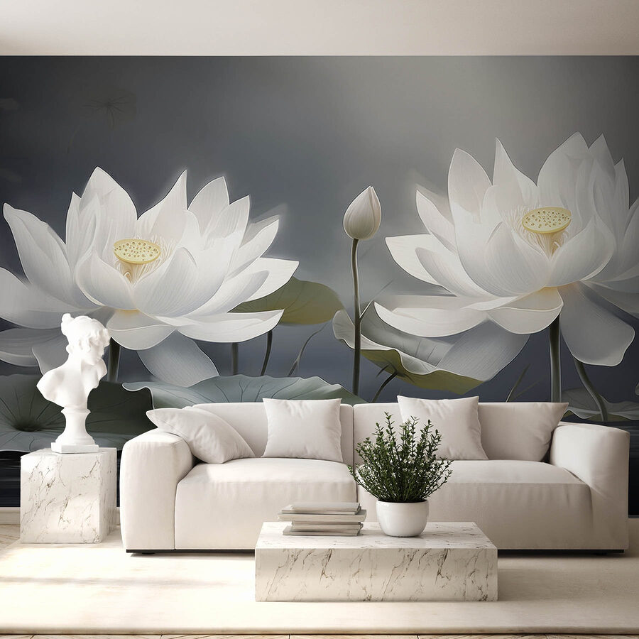 Μεταμορφώστε οποιοδήποτε δωμάτιο με αυτή την εκπληκτική τοιχογραφία τοίχου με μια χαριτωμένη ομάδα λευκών λουλουδιών που επιπλέουν σε ήρεμο νερό. Είναι σαν να φέρνετε έναν γαλήνιο κήπο μέσα στο χώρο σας – χωρίς τη λάσπη και τα έντομα, φυσικά. Φανταστείτε να πίνετε τον καφέ σας ατενίζοντας αυτά τα κομψά άνθη, με κάθε πέταλο να ψιθυρίζει ήρεμες δονήσεις. Ιδανικό για μια ζεστή γωνιά ή μια ονειρική κρεβατοκάμαρα, προσθέτει μια απαλή πινελιά που μπορεί να ηρεμήσει ακόμα και τα πιο πολυάσχολα μυαλά. Είναι επίσης έναυσμα για συζήτηση: περιμένετε τους επισκέπτες να σας ρωτήσουν πού βρήκατε ένα τέτοιο κόσμημα. Διακοσμήστε με μια πινελιά από την ομορφιά της φύσης – γιατί ποιος δεν θα ήθελε λουλούδια κάθε μέρα;