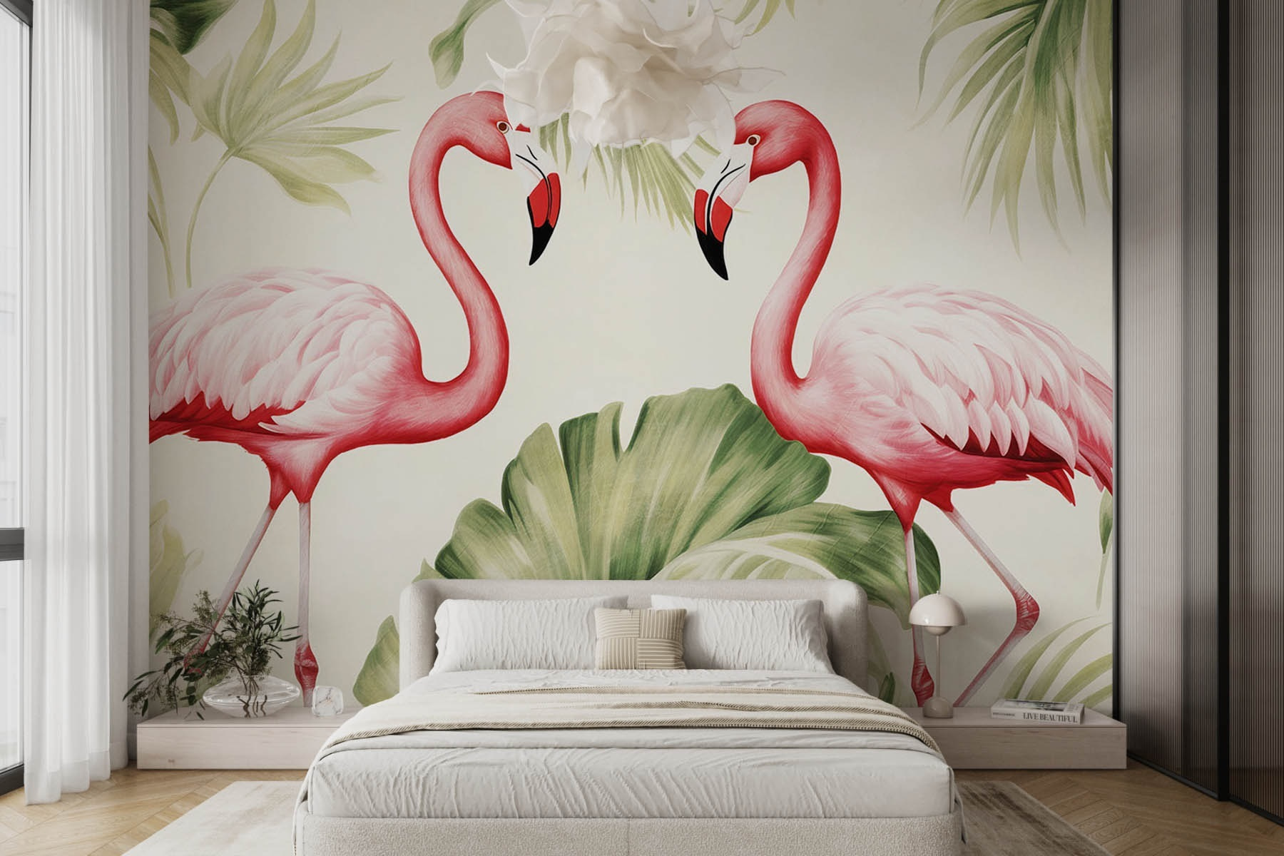 Μεταμορφώστε το χώρο σας σε έναν τροπικό παράδεισο με αυτή τη ζωντανή τοιχογραφία τοίχου με ένα ζευγάρι ζωηρών ροζ φλαμίνγκο που περιβάλλεται από καταπράσινα φύλλα. Είναι σαν να έχετε μίνι διακοπές μέσα στο σπίτι σας! Φανταστείτε να ξυπνάτε κάθε μέρα με αυτά τα ιδιόρρυθμα πουλιά να ποζάρουν παιχνιδιάρικα σε ένα απαλό φόντο. Τα φρέσκα χρώματα δίνουν ζωή σε κάθε δωμάτιο, κάνοντάς το να μοιάζει φιλόξενο και διασκεδαστικό. Είτε πρόκειται για ένα άνετο σαλόνι είτε για έναν εμπνευσμένο χώρο εργασίας, αυτή η τοιχογραφία προσθέτει μια πινελιά προσωπικότητας. Οι φίλοι και η οικογένεια θα μιλούν σίγουρα γι’ αυτήν. Ίσως ακόμη και να ρίξετε μια ματιά σε ένα κοκτέιλ φλαμίνγκο στο μέλλον σας!
