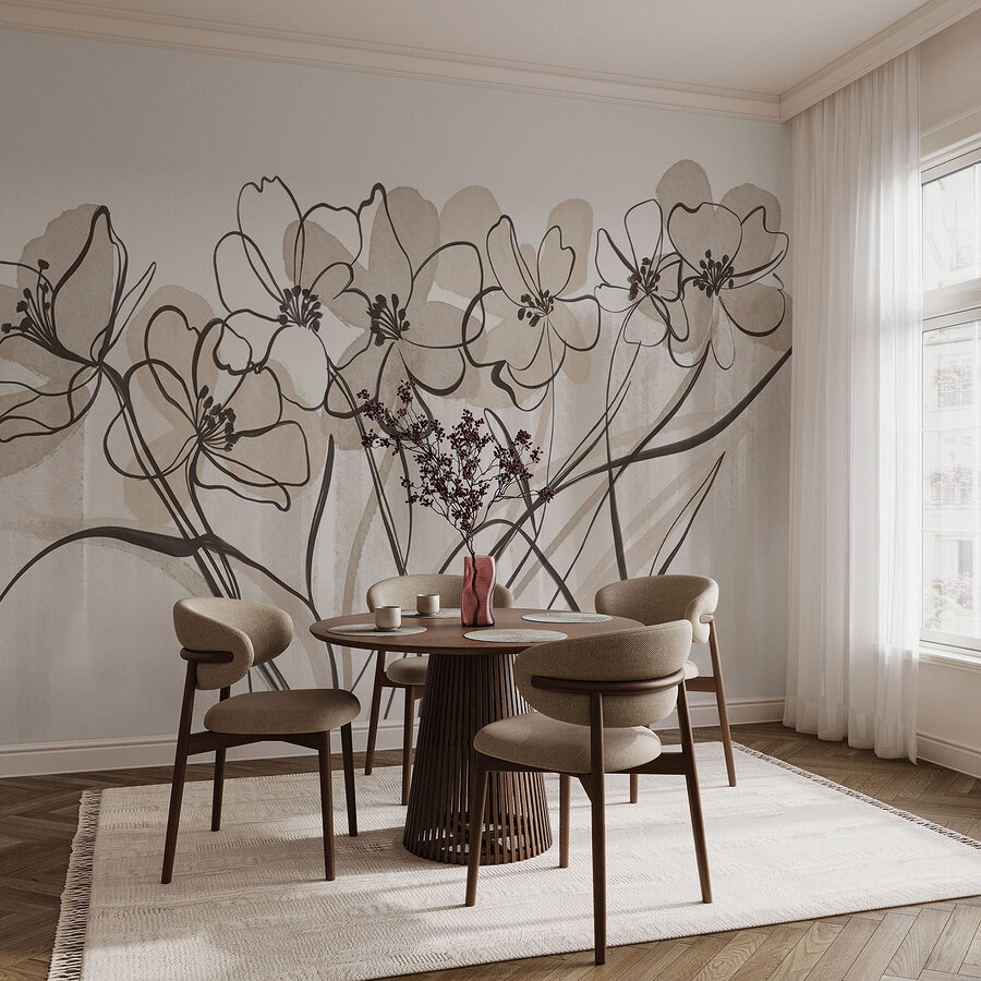 Φωτίστε το χώρο σας με αυτή την υπέροχη τοιχογραφία τοίχου με μια λεπτή γραμμή λουλουδιών που χορεύουν σε ένα απαλό λευκό φόντο. Φανταστείτε να μπαίνετε σε ένα δωμάτιο όπου η ομορφιά της φύσης καταλαγιάζει, ηρεμώντας το μυαλό σας ακόμα και τις πιο πολυάσχολες μέρες. Οι απαλές πινελιές ακουαρέλας δημιουργούν μια καταπραϋντική ατμόσφαιρα, ιδανική για μια ζεστή γωνιά ή ένα ήσυχο γραφείο. Είναι σαν να έχετε έναν μικρό κήπο στον τοίχο σας, χωρίς το ποτιστήρι! Οι φίλοι σας μπορεί να νομίζουν ότι είστε ένας ψίθυρος της φύσης. Γιατί, λοιπόν, να μην προσθέσετε μια πινελιά κομψότητας και ιδιοτροπίας στους τοίχους σας;