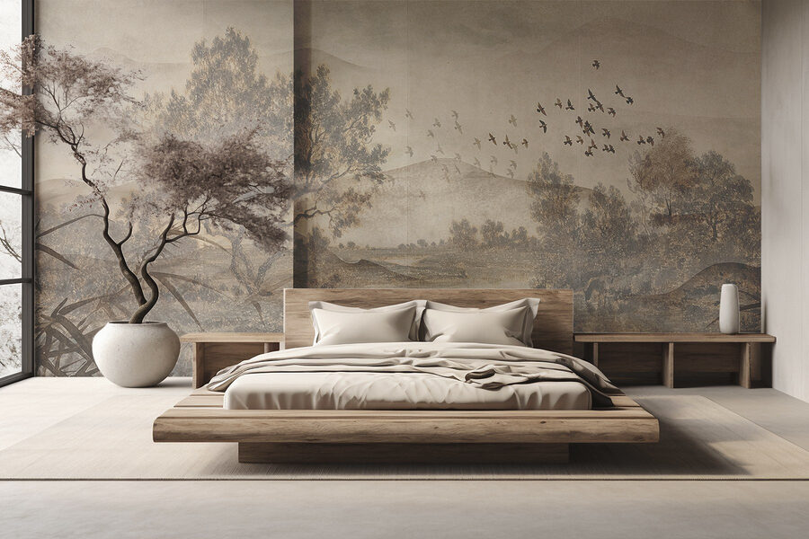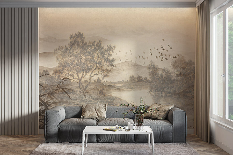Μεταμορφώστε οποιοδήποτε δωμάτιο σε μια γαλήνια απόδραση με αυτή τη γοητευτική τοιχογραφία τοίχου με ένα γαλήνιο τοπίο με δέντρα και ένα απαλό ποτάμι. Φανταστείτε να ξυπνάτε με τις απαλές αποχρώσεις της φύσης – είναι σαν να φέρνετε ένα κομμάτι της φύσης μέσα στο σπίτι. Το στυλ της υδατογραφίας προσθέτει μια ονειρική πινελιά, ιδανική για να ηρεμήσετε το μυαλό σας μετά από μια κουραστική μέρα. Φανταστείτε να πίνετε τον καφέ σας ατενίζοντας τα παιχνιδιάρικα πουλιά που πετούν από δίπλα σας ή να δημιουργείτε το τέλειο σκηνικό για μια ζεστή γωνιά ανάγνωσης. Αυτή η τοιχογραφία ψιθυρίζει ειρηνικές στιγμές και τεμπέλικα απογεύματα. Δεν είναι απλώς τέχνη, είναι μια εμπειρία που περιμένει να φωτίσει το χώρο σας.