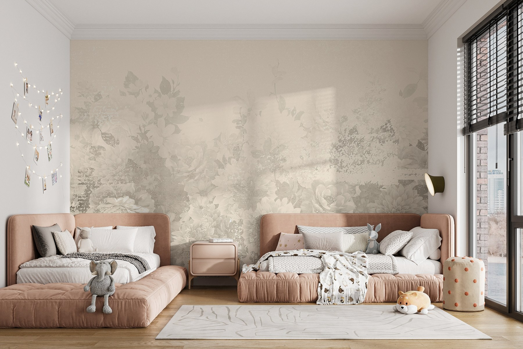 Είτε πρόκειται για μια ζεστή γωνιά είτε για ένα ζωντανό καθιστικό, αυτή η τοιχογραφία προσθέτει μια πινελιά ιδιοτροπίας που θα κάνει τους επισκέπτες να κάνουν μια διπλή ματιά. Τα φλοράλ μοτίβα φέρνουν ζωή και ενέργεια – ποιος δεν θα ήθελε τη γοητεία των ανθισμένων λουλουδιών να φωτίζει τη μέρα του; Είναι μια καλλιτεχνική πινελιά που μοιάζει αναζωογονητική και φιλόξενη, σαν μια ζεστή αγκαλιά από έναν φίλο.