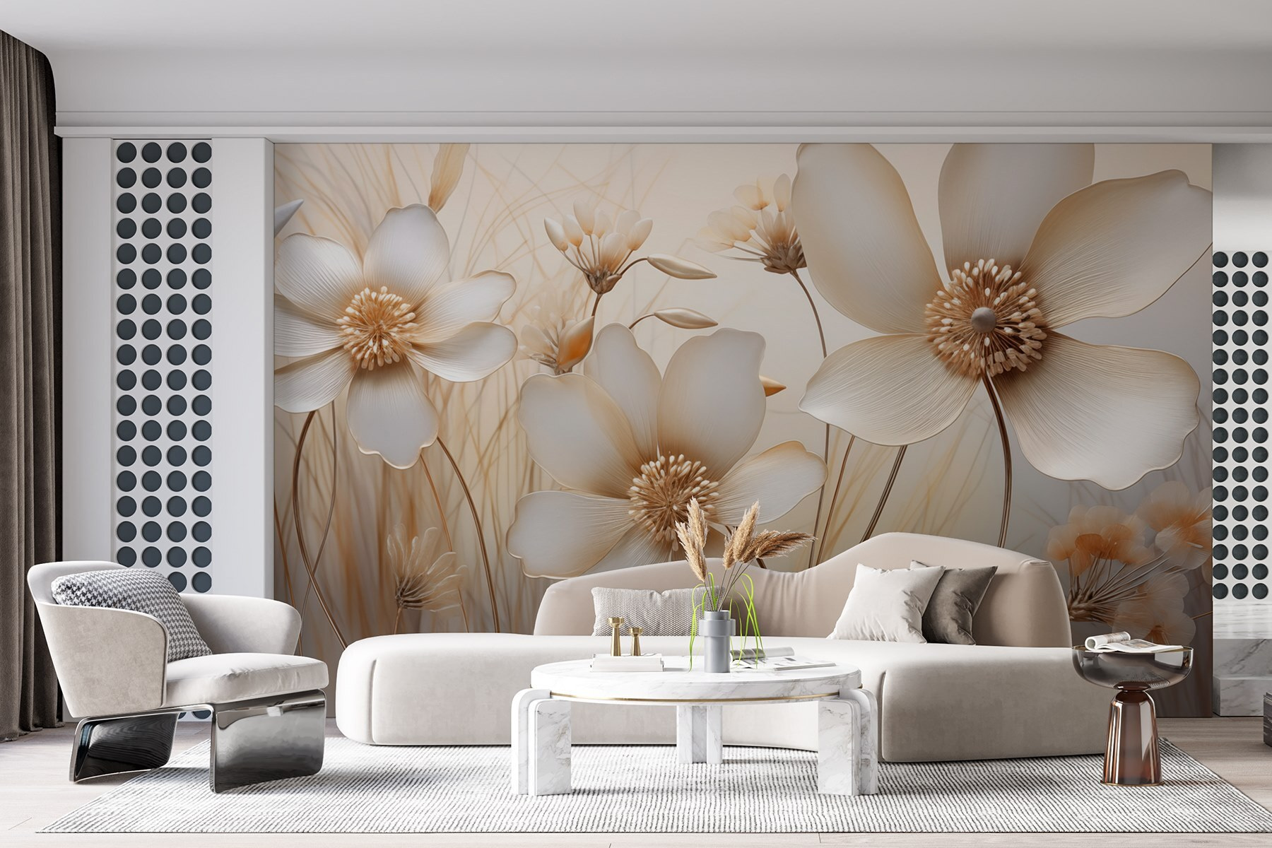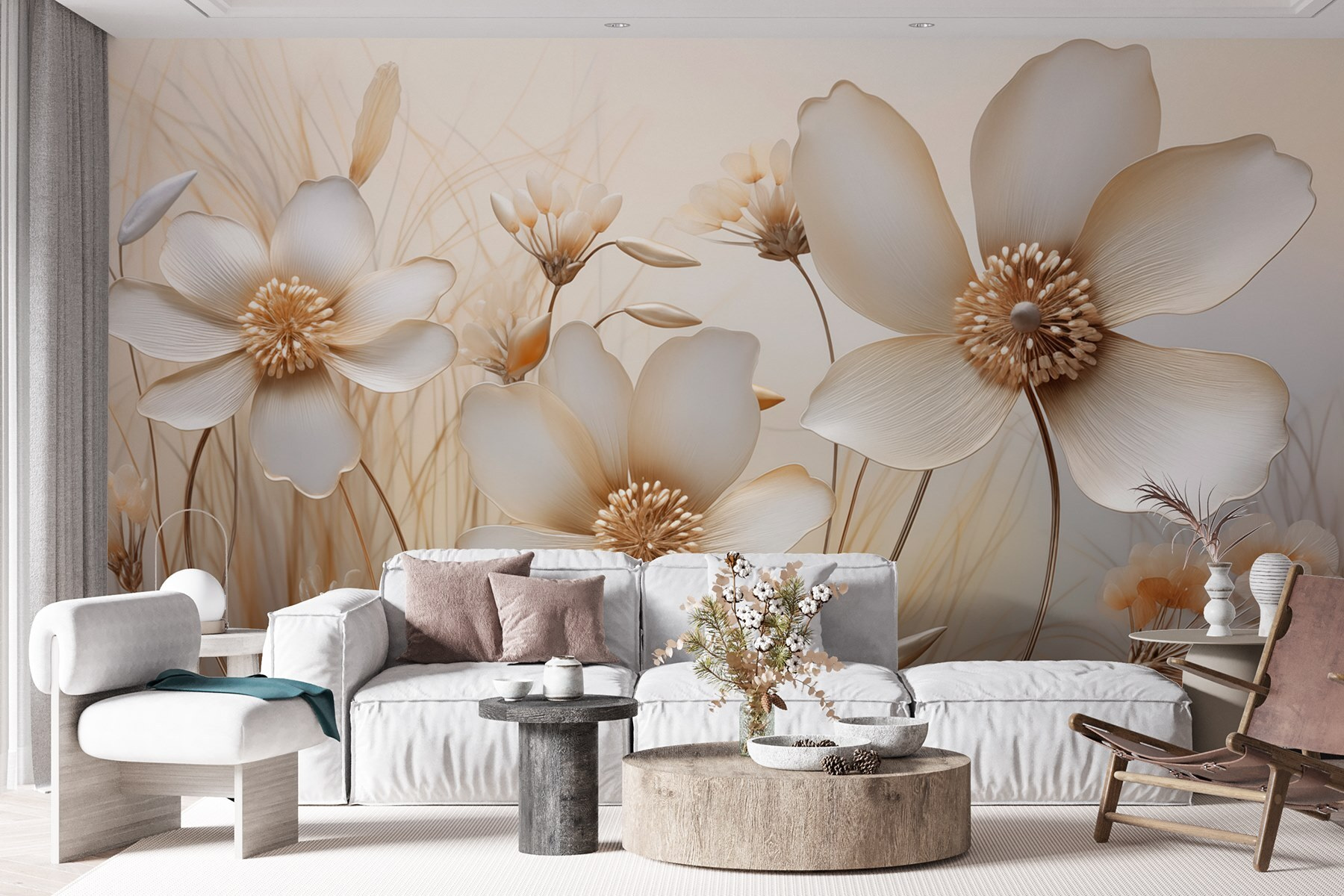Μεταμορφώστε οποιοδήποτε δωμάτιο με αυτή την εκπληκτική τοιχογραφία με τα ντελικάτα λουλούδια σε απαλές αποχρώσεις. Φανταστείτε να ξυπνάτε σε ένα γαλήνιο τοπίο όπου τα άνθη μοιάζουν να ψιθυρίζουν τα μυστικά της άνοιξης. Τα απαλά χρώματα δημιουργούν μια ζεστή, φιλόξενη ατμόσφαιρα που μπορεί να αναζωογονήσει ακόμα και τις πιο θλιβερές μέρες. Ιδανικό για μια ζεστή γωνιά ανάγνωσης ή ως κομμάτι statement σε ένα σαλόνι, προσθέτει μια πινελιά ηρεμίας και γοητείας. Είναι σαν να φέρνετε έναν μικρό κήπο στο σπίτι, χωρίς το ποτιστήρι! Μια λεπτή κομψότητα που μοιάζει τόσο αναζωογονητική όσο και διαχρονική, αυτή η τοιχογραφία υπόσχεται να ανθίσει όμορφα σε κάθε χώρο.
