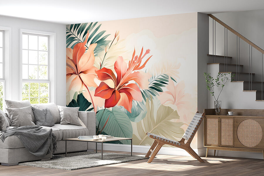 Μεταμορφώστε οποιοδήποτε δωμάτιο σε έναν τροπικό παράδεισο με αυτή τη ζωντανή φλοράλ τοιχογραφία. Κάθε άνθος ξεχειλίζει από χρώμα, θυμίζοντας ηλιόλουστες μέρες που περνάτε αράζοντας κάτω από φοίνικες, πίνοντας κάτι φρουτώδες. Φανταστείτε να σας υποδέχονται αυτά τα πλούσια λουλούδια κάθε πρωί- είναι σαν να σας λέει η φύση καλημέρα! Ιδανική για ένα σαλόνι ή ένα υπνοδωμάτιο, αυτή η τοιχογραφία προσδίδει μια αέρινη, χαρούμενη ατμόσφαιρα που μοιάζει φρέσκια και φιλόξενη. Είναι σαν μίνι διακοπές για τους τοίχους σας, χωρίς τη βαλίτσα! Αφήστε την ομορφιά της φύσης να σας περιβάλλει, κάνοντας κάθε στιγμή λίγο πιο φωτεινή και πολύ πιο χαρούμενη.