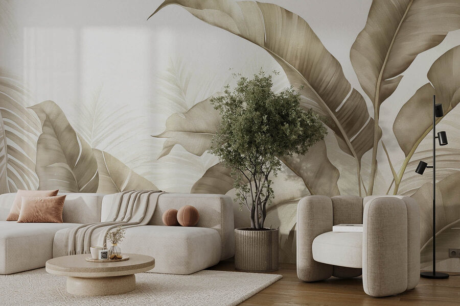 Απογειώστε το χώρο σας με αυτή την εκπληκτική τοιχογραφία τοίχου, που παρουσιάζει ένα όμορφο σχέδιο φυσικών τόνων και κομψών φυλλωμάτων. Φανταστείτε να μπαίνετε σε ένα δωμάτιο όπου τα απαλά πράσινα και τα απαλά καφέ σας τυλίγουν σε μια ζεστή αγκαλιά, σχεδόν σαν μια ζεστή αγκαλιά από τη φύση. Είναι ιδανικό για εκείνες τις ημέρες που ονειρεύεστε μια τροπική απόδραση, χωρίς να βγείτε από το σπίτι. Το απρόσκοπτο μείγμα φύλλων προσθέτει μια πινελιά εκλέπτυνσης, κάνοντας ακόμα και τον πιο μικρό χώρο να μοιάζει με μια καταπράσινη όαση. Μεταμορφώστε έναν βαρετό τοίχο σε σημείο αναφοράς για συζήτηση – οι επισκέπτες δεν θα αντισταθούν να σταματήσουν για να το θαυμάσουν. Είναι τέχνη; Είναι η φύση; Ίσως και τα δύο!