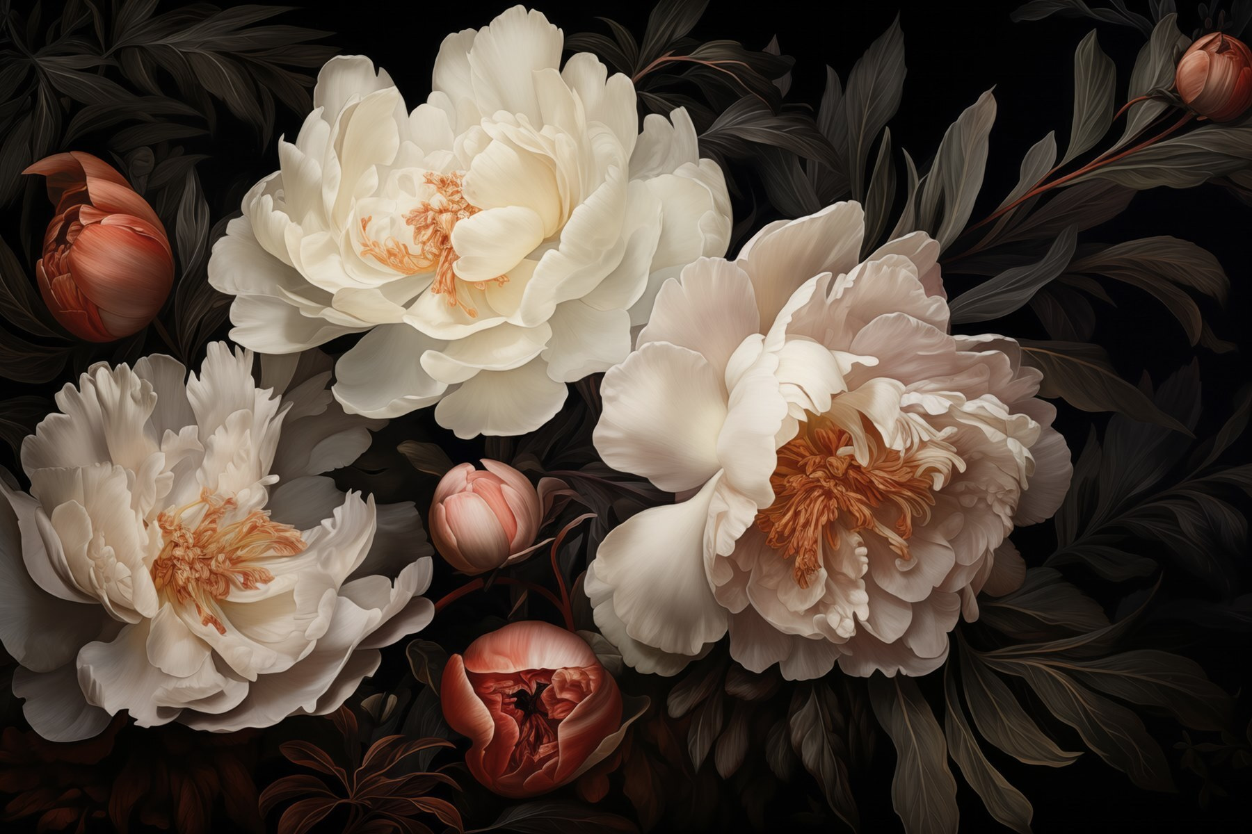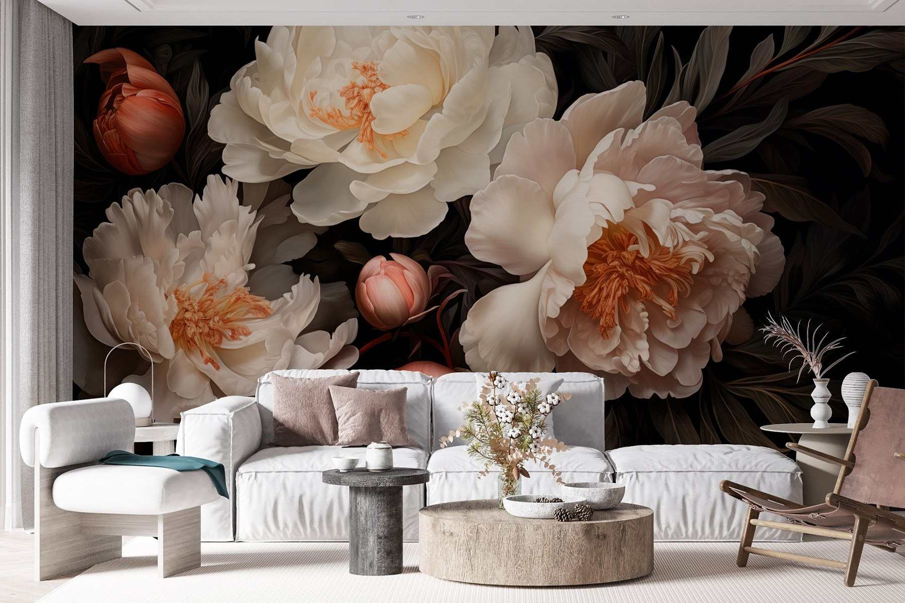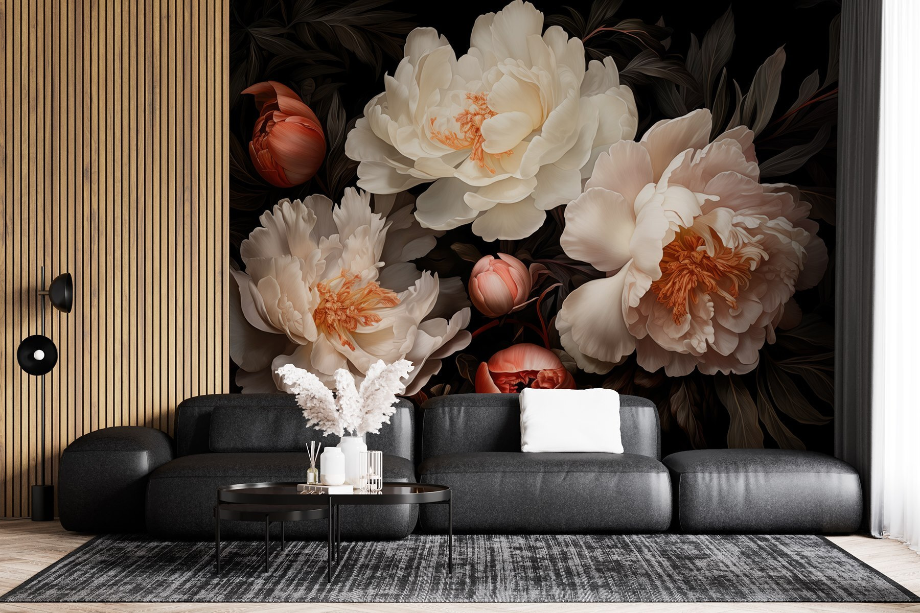 Φανταστείτε να μπαίνετε σε ένα δωμάτιο που μοιάζει με μυστικό κήπο, όπου η ομορφιά των παιώνιων ζωντανεύει τα πάντα. Αυτή η τοιχογραφία τοίχου, με την εκπληκτική ομάδα λευκών λουλουδιών, μεταμορφώνει κάθε χώρο σε ένα ήρεμο καταφύγιο. Φανταστείτε να πίνετε τον πρωινό σας καφέ, περιτριγυρισμένοι από απαλά πέταλα που ψιθυρίζουν γαλήνη. Οι πλούσιες αντιθέσεις των λουλουδιών με το σκούρο φύλλωμα δημιουργούν μια ζεστή αγκαλιά, ιδανική για τα τεμπέλικα απογεύματα. Μιλάμε για έναυσμα για συζήτηση! Είναι σαν να έχετε ένα κομμάτι της φύσης μέσα στο σπίτι, χωρίς το ποτιστήρι. Προσθέστε μια πινελιά γοητείας και αφήστε κάθε ματιά να ανθίσει σε χαρά.