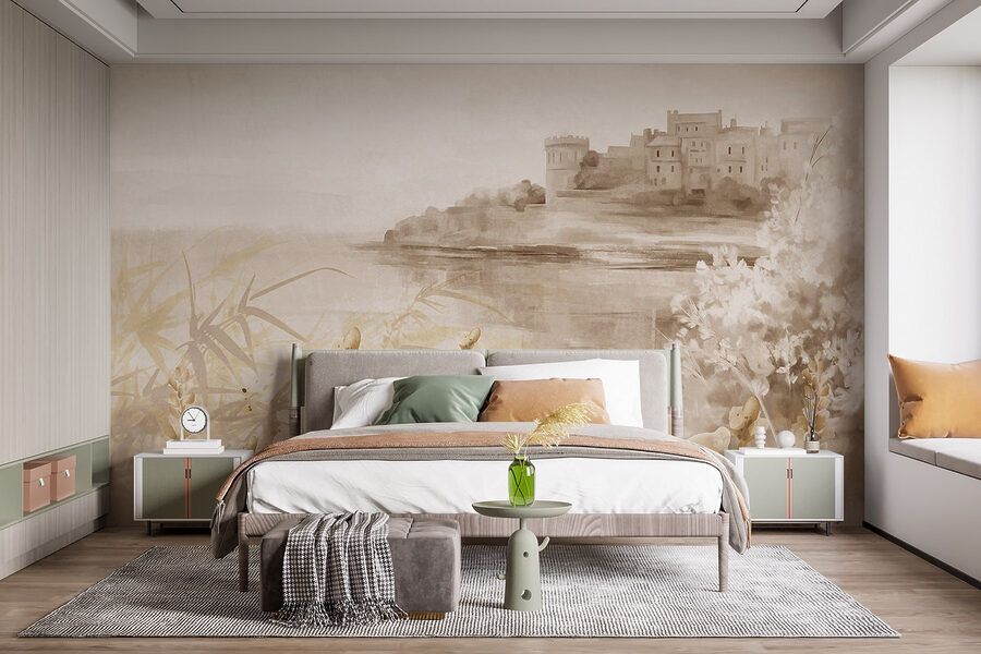 Φανταστείτε να μπαίνετε σε μια γαλήνια απόδραση, ακριβώς από την άνεση του σαλονιού σας. Αυτή η τοιχογραφία τοίχου, με ένα ονειρικό κάστρο που βρίσκεται δίπλα σε μια γαλήνια λίμνη, φέρνει μια πινελιά ιδιοτροπίας σε κάθε χώρο. Οι απαλές αποχρώσεις συνδυάζονται άψογα με το απαλό περίγραμμα της φύσης, κάνοντάς το να μοιάζει καταπραϋντικό, όπως ένα ανοιχτό χωράφι ένα τεμπέλικο απόγευμα. Φανταστείτε άνετα βράδια που περνάτε θαυμάζοντας αυτό το έργο τέχνης πίνοντας το αγαπημένο σας τσάι, αφήνοντας το μυαλό σας να περιπλανηθεί σε ομιχλώδη πρωινά δίπλα στη λίμνη. Είναι σαν να φέρνετε ένα μικρό κομμάτι από τη γοητεία του παραμυθιού μέσα στο σπίτι, ιδανικό για να πυροδοτήσετε τη φαντασία και μια ζεστή, άνετη αίσθηση σε οποιοδήποτε δωμάτιο. Είτε πρόκειται για ένα σκηνικό για οικογενειακές συγκεντρώσεις είτε απλά για ένα ήσυχο σημείο για ονειροπόληση, αυτή η τοιχογραφία τα κάνει όλα, αναβαθμίζοντας αβίαστα το παιχνίδι της διακόσμησής σας.