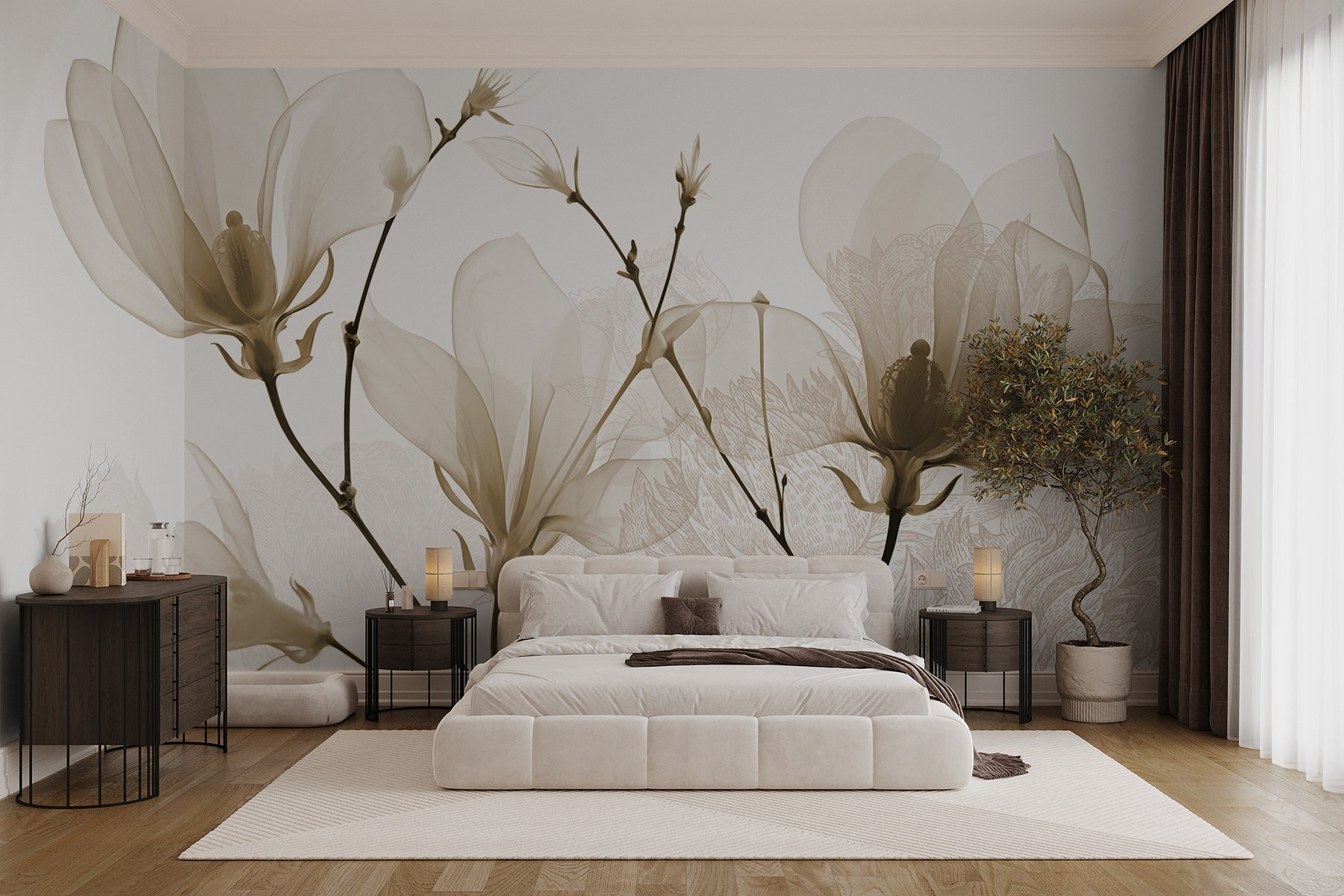 Μεταμορφώστε οποιοδήποτε δωμάτιο σε ένα ήρεμο καταφύγιο με αυτή την τοιχογραφία με τα ντελικάτα άνθη σε απαλές αποχρώσεις. Φανταστείτε το: ξυπνάτε σε απαλές λουλουδένιες δονήσεις που ψιθυρίζουν γαλήνη, ιδανικές για να πίνετε καφέ ή να εξασκείτε τις ικανότητές σας στο διάβασμα. Οι λεπτές γραμμές και οι ήπιες αποχρώσεις δημιουργούν έναν αέρα εκλεπτυσμού χωρίς να ιδρώνετε. Οι φίλοι θα θαυμάσουν πώς μια τόσο απλή προσθήκη μπορεί να αναβαθμίσει ολόκληρο το χώρο. Είναι σχεδόν σαν να φέρνετε έναν κήπο στο σπίτι – χωρίς την ενοχλητική γύρη! Είτε σε μια ζεστή γωνιά είτε ως κομμάτι δήλωσης, δημιουργεί τη σωστή διάθεση, δεν νομίζετε;