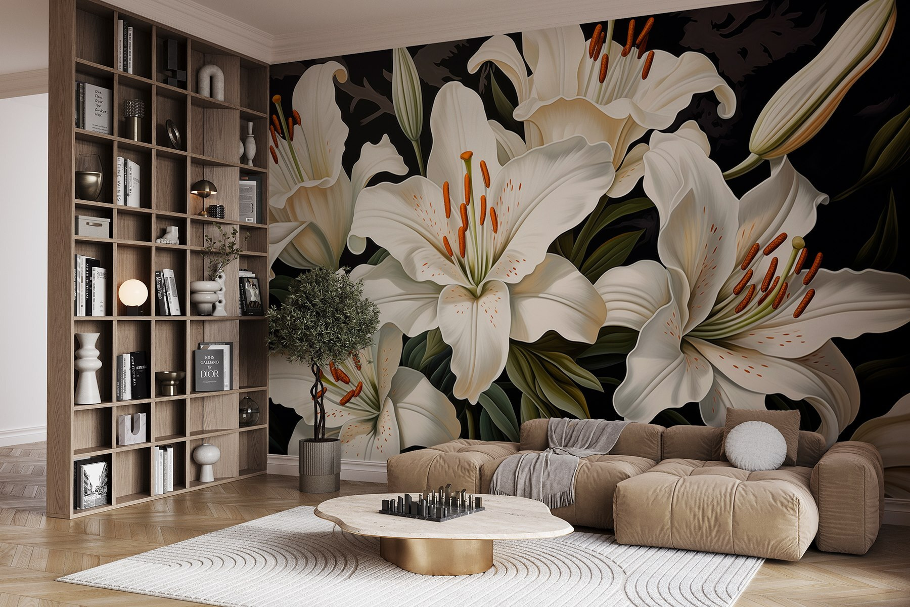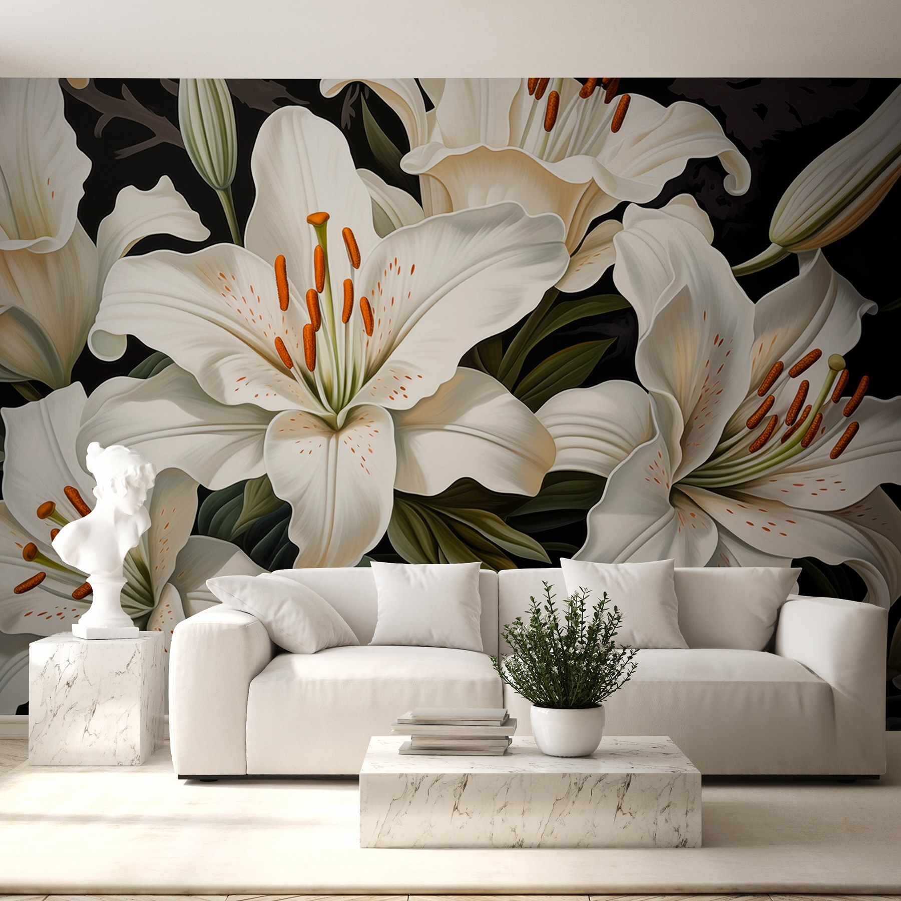 Μεταμορφώστε οποιονδήποτε χώρο σε μια γαλήνια όαση με αυτή την εκπληκτική τοιχογραφία με όμορφα λευκά κρίνα σε πλήρη άνθιση. Φανταστείτε να μπαίνετε σε ένα δωμάτιο και να αισθάνεστε αμέσως πιο ανάλαφροι, σαν να μπήκε μέσα ένα φρέσκο αεράκι κήπου. Τα λεπτεπίλεπτα πέταλα και οι ζωντανές λεπτομέρειες δημιουργούν μια αίσθηση ηρεμίας, ιδανική για μια ζεστή γωνιά ανάγνωσης ή ακόμα και για εκείνον τον τοίχο που χρειάζεται λίγη αγάπη. Είναι σαν να φέρνετε τη φύση στο σπίτι χωρίς την ταλαιπωρία του ποτίσματος! Επιπλέον, ποιος δεν θα χαμογελούσε όταν τον υποδέχονται καθημερινά τόσο κομψά άνθη; Δώστε στους γυμνούς τοίχους μια λουλουδένια αγκαλιά!