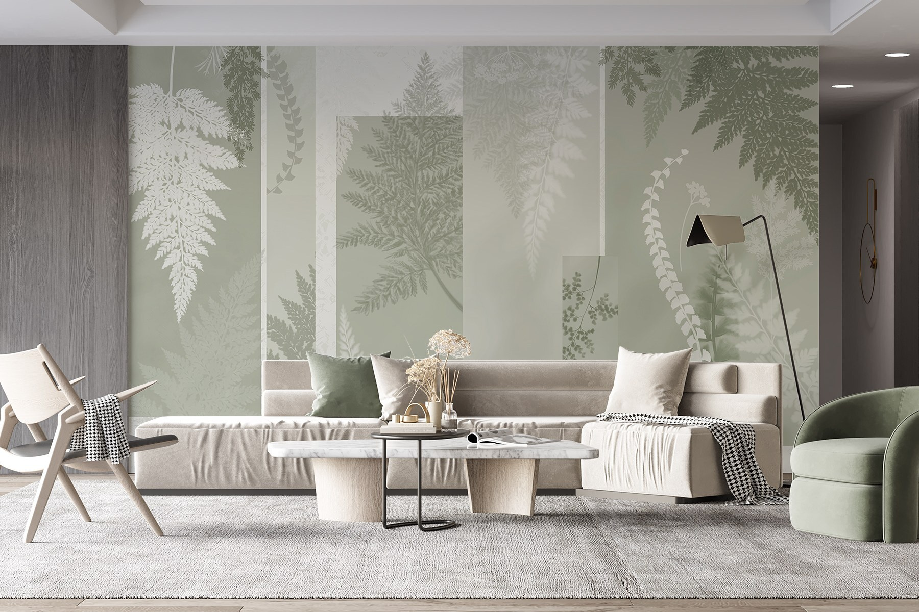Η μεταμόρφωση ενός χώρου με την “Κομψότητα της Φύσης σε διακριτικές αποχρώσεις” είναι σαν να προσκαλείτε μια απαλή αύρα του δάσους σε εσωτερικό χώρο. Φανταστείτε αυτή την τοιχογραφία να καλύπτει έναν τοίχο, ψιθυρίζοντας ιστορίες από γαλήνια δάση και απαλά ταλαντευόμενα φύλλα. Τα σιωπηλά πράσινα και τα λεπτά φυλλώματα δημιουργούν μια ήρεμη ατμόσφαιρα, ιδανική για να χαλαρώσετε μετά από μια κουραστική μέρα. Φανταστείτε να κουλουριάζεστε με ένα καλό βιβλίο ή να απολαμβάνετε ένα φλιτζάνι τσάι ενώ απολαμβάνετε την γαλήνια ομορφιά του. Είναι σαν μια μίνι-ανάπαυλα χωρίς να βγείτε ποτέ από το σπίτι. Αυτή η τοιχογραφία είναι μια υπενθύμιση ότι η γοητεία της φύσης μπορεί να ανθίσει ακόμα και στις πιο πολυάσχολες γωνιές μας, φέρνοντας λίγη γαλήνη στην καθημερινότητα.