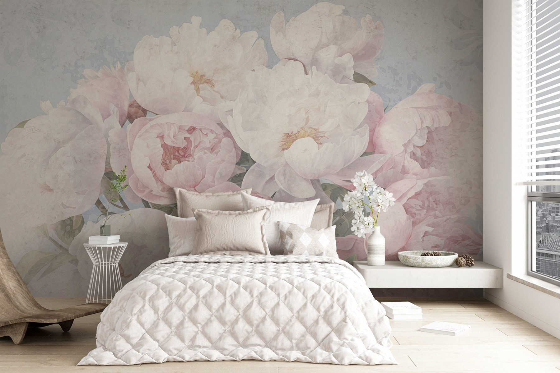 Μεταμορφώστε οποιονδήποτε χώρο σε ένα λουλουδάτο καταφύγιο με τις τοιχογραφίες Μπουκέτο ροζ και λευκών λουλουδιών. Αυτή η τοιχογραφία παρουσιάζει μια ονειρική σύνθεση από παιώνιες που ψιθυρίζει κομψότητα και γοητεία. Απλά φανταστείτε το: ένα γαλήνιο σκηνικό που προσκαλεί μια χαλαρωτική ατμόσφαιρα, καθιστώντας το ιδανικό για μια ζεστή γωνιά ανάγνωσης ή μια χαρούμενη τραπεζαρία. Τα απαλά χρώματα χορεύουν στον τοίχο, φωτίζοντας το δωμάτιο χωρίς να είναι πολύ δυνατά. Φανταστείτε να πίνετε τσάι, ενώ ατενίζετε αυτές τις ομορφιές, νιώθοντας μια αίσθηση ηρεμίας να σας κατακλύζει. Είναι σαν να έχετε μια ανάσα φρέσκου αέρα σε εσωτερικό χώρο – ποιος δεν θα το ήθελε αυτό;