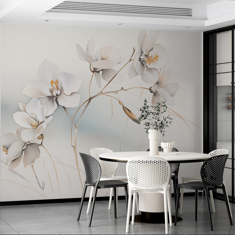 Μεταμορφώστε οποιοδήποτε δωμάτιο με αυτή την εκπληκτική τοιχογραφία, με λεπτά λευκά λουλούδια που κάθονται με χάρη σε κλαδιά. Φανταστείτε να μπαίνετε σε έναν χώρο που θα μοιάζει αμέσως πιο ήρεμος και φιλόξενος. Η απαλή παλέτα δημιουργεί μια γαλήνια ατμόσφαιρα, ιδανική για να χαλαρώσετε μετά από μια κουραστική μέρα. Φανταστείτε άνετες νύχτες μέσα στο σπίτι, ενώ ατενίζετε αυτά τα άνθη, σαν να φέρνουν λίγο από τη φύση στους εσωτερικούς χώρους. Είναι σαν να έχετε έναν προσωπικό κήπο χωρίς το ποτιστήρι και τα περιστασιακά έντομα. Ένα τέλειο σκηνικό για καλλιτεχνικές στιγμές, ειλικρινείς συζητήσεις ή απλά για ονειροπολήσεις. Φέρτε μια πινελιά ανθισμένης γοητείας στο σπίτι.