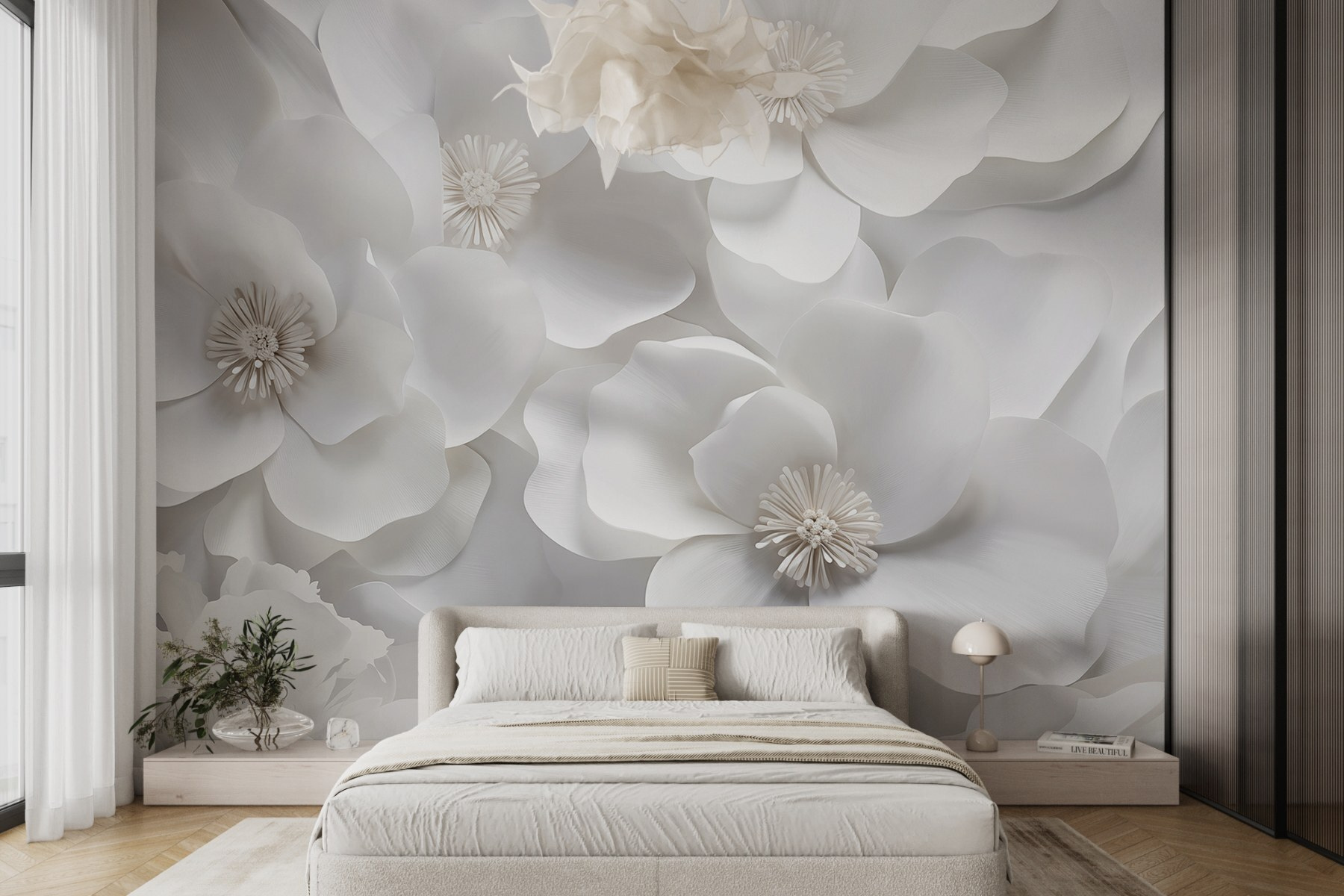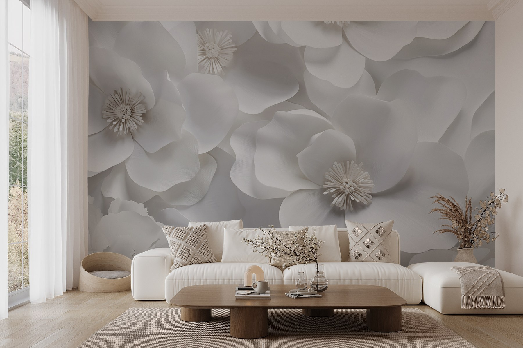 Μεταμορφώστε έναν ανιαρό χώρο σε ένα γαλήνιο καταφύγιο με την “Ομάδα τοιχογραφιών λευκών λουλουδιών”. Φανταστείτε να μπαίνετε σε ένα δωμάτιο όπου τα υπερμεγέθη άνθη ανθίζουν έντονα, φέρνοντας ένα άγγιγμα της φύσης στους εσωτερικούς χώρους. Η απαλή, διακριτική παλέτα καλλιεργεί έναν αέρα ηρεμίας, ιδανικό για άνετες νύχτες στο σπίτι ή ζωηρά brunch με φίλους. Είναι σαν να κοιτάζετε έναν κήπο την αυγή – απαλό, φρέσκο και αναζωογονητικό. Επιπλέον, ποιος δεν θα ήθελε να περιβάλλεται από λουλούδια όλο το χρόνο; Ιδανικό για υπνοδωμάτιο, σαλόνι ή ακόμη και για ένα κομψό γραφείο. Πείτε αντίο στους απλούς τοίχους και γεια σε μια λουλουδένια αγκαλιά!