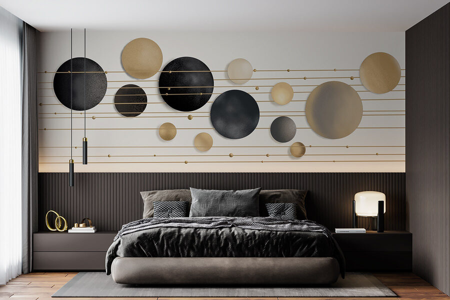 Μεταμορφώστε το χώρο σας με τρόπο που να σας δίνει χαρά! Αυτή η τοιχογραφία, με ένα παιχνιδιάρικο μείγμα κύκλων και γραμμών, προσθέτει μια καλλιτεχνική ατμόσφαιρα που θα κάνει όλους να κάνουν μια διπλή ματιά. Είναι σαν να έχετε ένα κομμάτι μοντέρνας τέχνης στον τοίχο σας – ιδανικό για τα άνετα σαλόνια ή τα κομψά γραφεία που χρειάζονται λίγη προσωπικότητα. Φανταστείτε τους καλεσμένους να μπαίνουν μέσα, να ρίχνουν μια ματιά στην τοιχογραφία και να λένε: “Ουάου, αυτό είναι εντυπωσιακό!” Ο συνδυασμός των σχημάτων δημιουργεί έναν ρυθμό που μπορεί σχεδόν να σας κάνει να νιώσετε σαν να είστε παγιδευμένοι σε έναν χορό. Είναι διακριτικό αλλά και εντυπωσιακό – μια οπτική απόλαυση που φέρνει ζεστασιά χωρίς να είναι πολύ εντυπωσιακό. Ιδανικό για όποιον απολαμβάνει μια πινελιά ιδιοτροπίας!