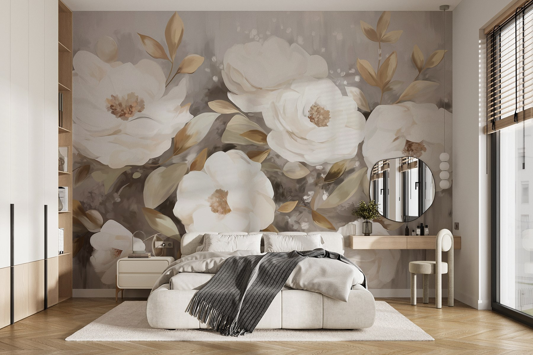 Μεταμορφώστε το χώρο σας με αυτή την εκπληκτική τοιχογραφία με κομψά λευκά λουλούδια και απαλά, ευαίσθητα φύλλα. Είναι σαν να φέρνετε έναν γαλήνιο κήπο στο σαλόνι σας. Φανταστείτε να κάθεστε με τον πρωινό σας καφέ, να ατενίζετε αυτά τα άνθη και να νιώθετε αμέσως ένα κύμα ηρεμίας. Τα απαλά χρώματα ψιθυρίζουν γαλήνη, κάνοντας οποιοδήποτε δωμάτιο να αισθάνεται πιο φιλόξενο, είτε πρόκειται για τη ζεστή γωνιά ανάγνωσης είτε για έναν ανανεωμένο διάδρομο. Επιπλέον, είναι τόσο εύκολο στην εγκατάσταση – απλά ξεκολλήστε και κολλήστε. Ιδανικό για όσους αγαπούν μια αλλαγή χωρίς πολλή φασαρία. Είναι η γοητεία των λουλουδιών, χωρίς το ποτιστήρι!