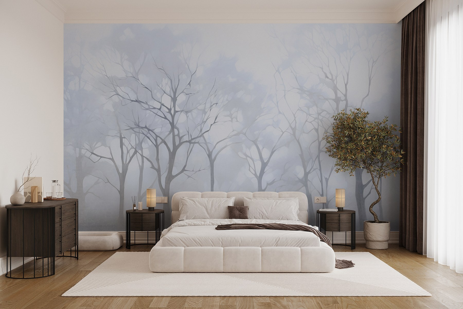 Μεταμορφώστε το χώρο σας σε μια γαλήνια απόδραση με αυτή τη μαγευτική τοιχογραφία τοίχου με μια ομάδα δέντρων τυλιγμένη σε απαλή ομίχλη. Δημιουργεί μια αιθέρια ατμόσφαιρα, προσκαλώντας την ηρεμία κατευθείαν στο σπίτι σας. Φανταστείτε να ξυπνάτε κάθε πρωί και η πρώτη σας θέα να είναι ένα ομιχλώδες δάσος που μοιάζει με απαλό ψίθυρο από τη φύση. Οι διακριτικοί τόνοι αυτής της τοιχογραφίας φέρνουν ηρεμία σε κάθε δωμάτιο, ιδανικό για όταν χρειάζεστε λίγη ηρεμία μετά από μια ταραχώδη μέρα. Απλά φανταστείτε το – μια ζεστή γωνιά ανάγνωσης, ένα αχνιστό φλιτζάνι τσάι και να χάνεστε στην ήσυχη ομορφιά αυτού του ονειρικού τοπίου. Δεν είναι απλώς διακόσμηση- είναι μια καθημερινή υπενθύμιση για να αναπνέετε βαθιά και να αγκαλιάζετε τις στιγμές της ζωής.